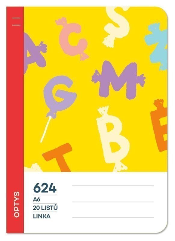 Sešit 624 je určen pro děti na nižších stupních základní školy. Formát A6 má linku o šířce 8 mm. Tyto parametry napovídají, že se sešit ideálně hodí na kratší texty a poznámky. Sešit o 20 listech. Motiv dětem pomáhá rozlišit, jestli je sešit vhodný do matematiky, psaní, prvouky nebo jiného předmětu. A učitelům tak usnadňuje komunikaci se žáky. Tento školní sešit OPTYS, stejně jako celou řadu, jsme vyvinuli ve spolupráci s grafickými designéry i těmi nejpovolanějšími – učiteli. Díky tomu je maximálně funkční. Zároveň má moderní design, který se žákům zalíbí. Z piktogramu na hřbetu a obálky sešitu hned vidíte číslo, formát, počet stran i to, zda je sešit čistý, linkovaný, čtverečkovaný. Česká výroba v naší tiskárně Optys zaručuje špičkovou kvalitu i dostupnost produktů.