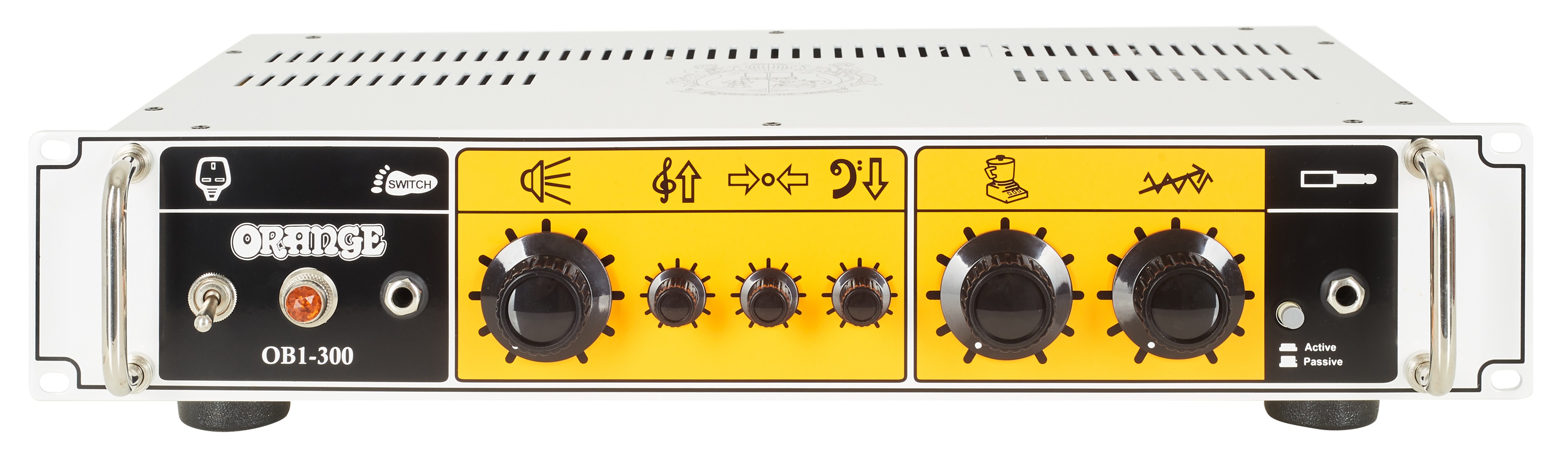 Baskytarový tranzistorový zesilovač Tento baskytarový zesilovač s označením Orange OB1-300 je určen zejména pro baskytaristy toužící po mohutném zvuku s možností zkreslení přímo zesilovačem. 300wattový aparát funguje na principu bi-amp. To znamená, že vstupní signál z nástroje je rozdělen do dvou nezávislých okruhů. Jeden se chová jako tradiční čistý basový zesilovač, který disponuje veškerými zvukovými charakteristikami, které byste od Orange zesilovače očekávali. Druhý okruh si bere pouze vyšší zvuková pá