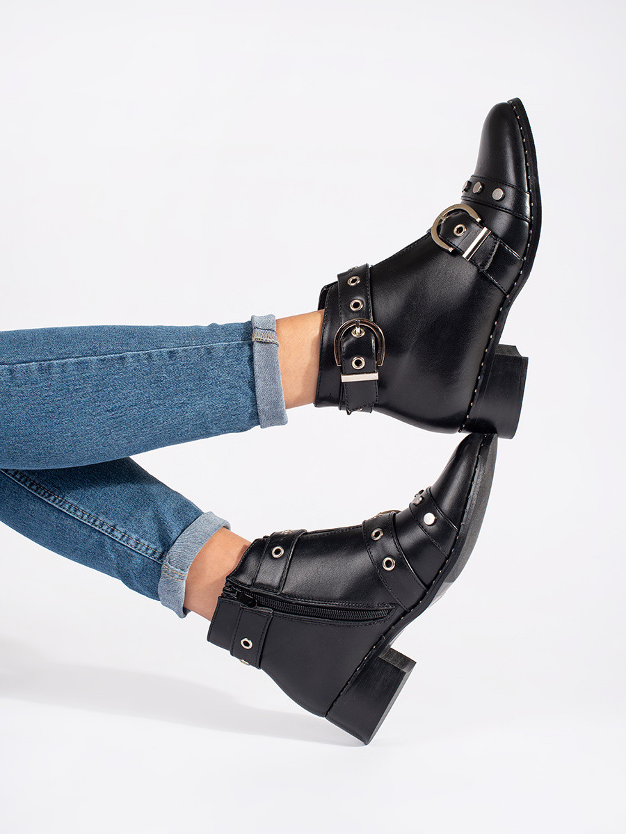Originální dámské černé kotníčkové boty na širokém podpatku 39