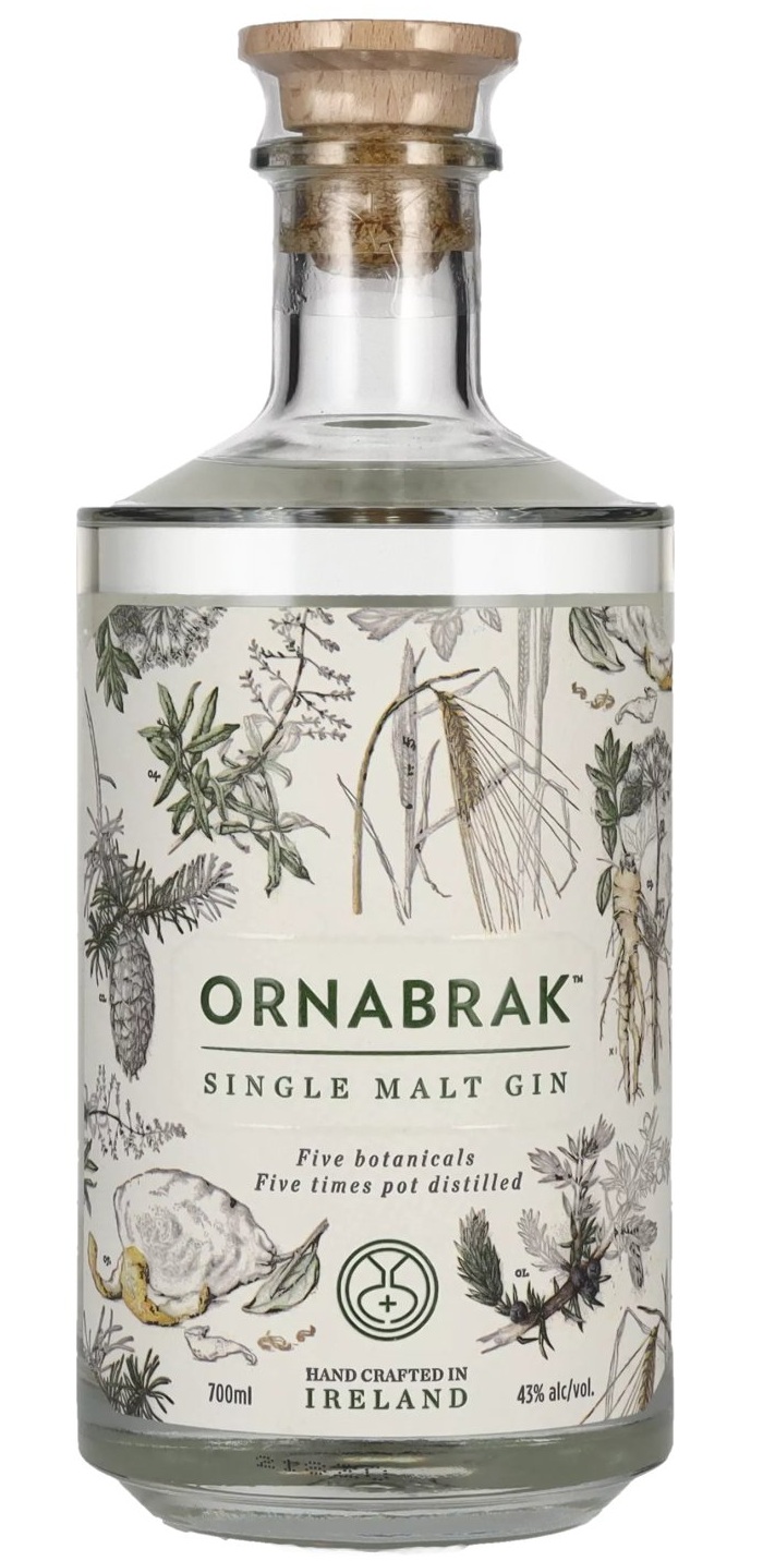 Při páté destilaci se gin rafinuje společně s pěti pečlivě vybranými rostlinnými látkami, což vede k komplexnímu květinovému aroma. Název "Ornabrak" pochází z gaelského slova "Eorna Braiche", což znamená "sladový ječmen" a dokonale odráží původ tohoto jedinečného ginu. Vůně: Svěží tóny jalovce, doprovázené nádechem citrusových a květinových vůní.Chuť: Komplexní a vyvážená s příjemnou rovnováhou jalovce, citrusových tónů a osvěžujícím bylinným kořením anděliky a citronové verbeny.Závěr: Dlouhotrvající a osvěžující s jemným tónem borovice a citronu, který přetrvává v ústech.
