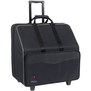 Kufr na akordeon Pouzdro na akordeon (s 96 basy) zhotovené z plastifikovaného polyesteru s konstrukcí vyztuženou dřevem. Nabízí externí kapsu pro uložení drobného příslušenství, vycpávku z polyuretanové pěny, madlo, kolečka, vysouvací rukojeť a zapínání na zip. Španělská značka Ortolá se věnuje výrobě obalů a pouzder na hudební nástroje a hudební příslušenství více než 60 let. Veškerá práce na výrobcích probíhá v továrně ve španělském městečku La Pobla del Duc v provincii Valencia.