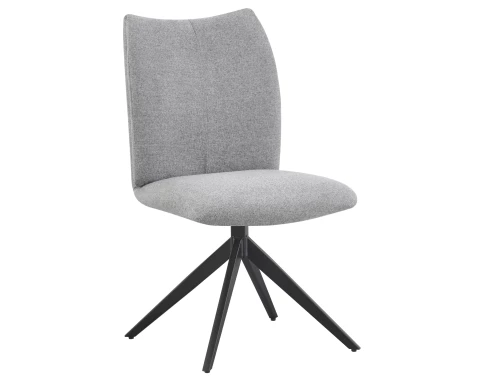 Jídelní židle v elegantním moderním stylu má pohodlně zaoblené opěradlo, otočný sedák a černou kovovou podnož. Očalouněna tkaninou v barvě holubí šedá.