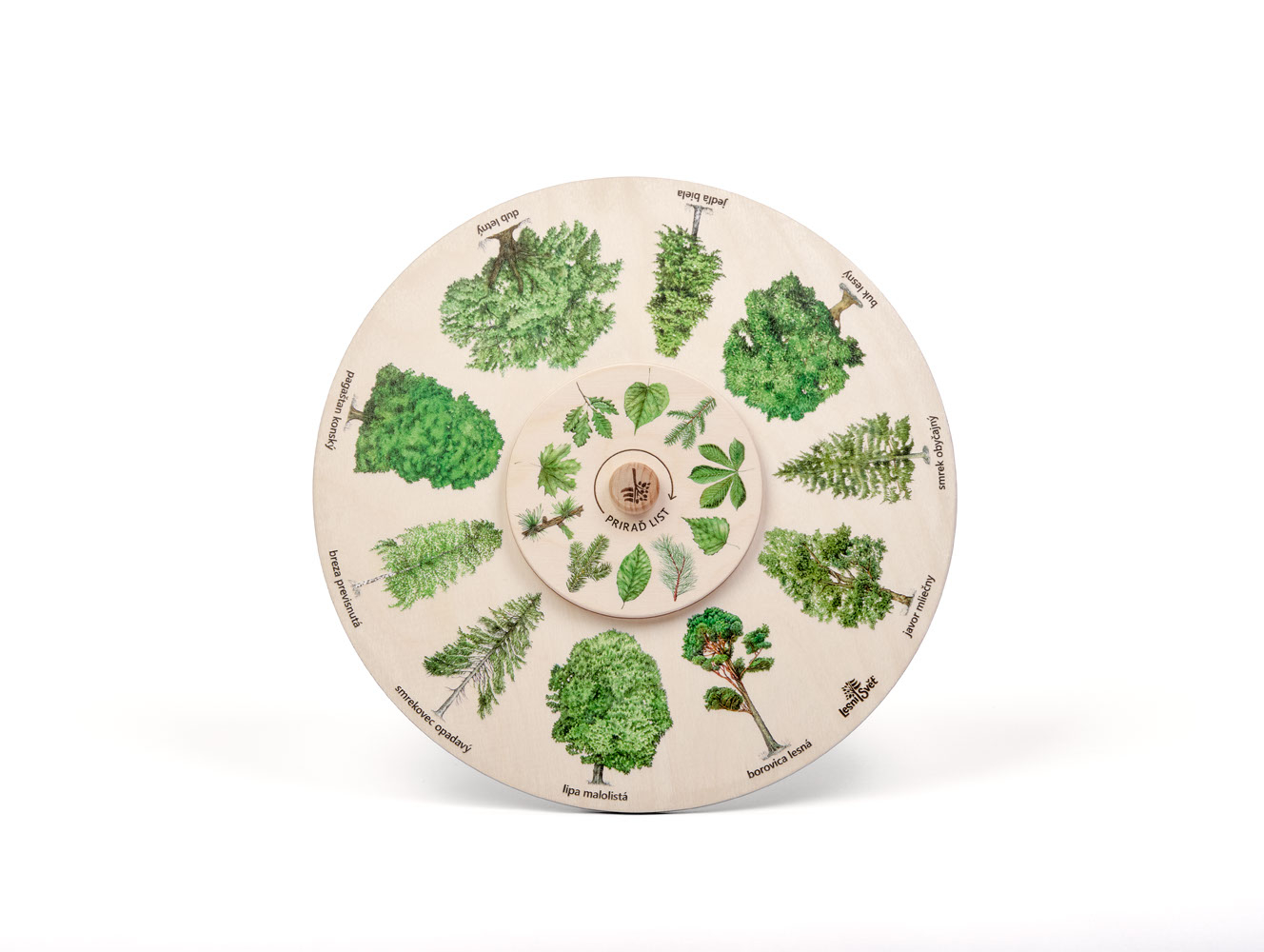 Otočné kolesá vyrábajú v našej dielni české ruky z kvalitného českého certifikovaného dreva. Balenie obsahuje 1 koleso. Priemer kolesa je 25 cm. Nemá ochranný obal. Autori kresieb sú českí ilustrátori, obrázky sú chránené autorskými právami. Otočné koleso zábavnou a hravou formou zoznamuje deti aj dospelých s prírodou. Správnym otočením kolesa priradíte list ku stromu. Lesný svet = značka s ekologickým certifikátom udržateľného hospodárstva PEFC. Všetky produkty sú vyrobené s ohľadom na životné prostredie.