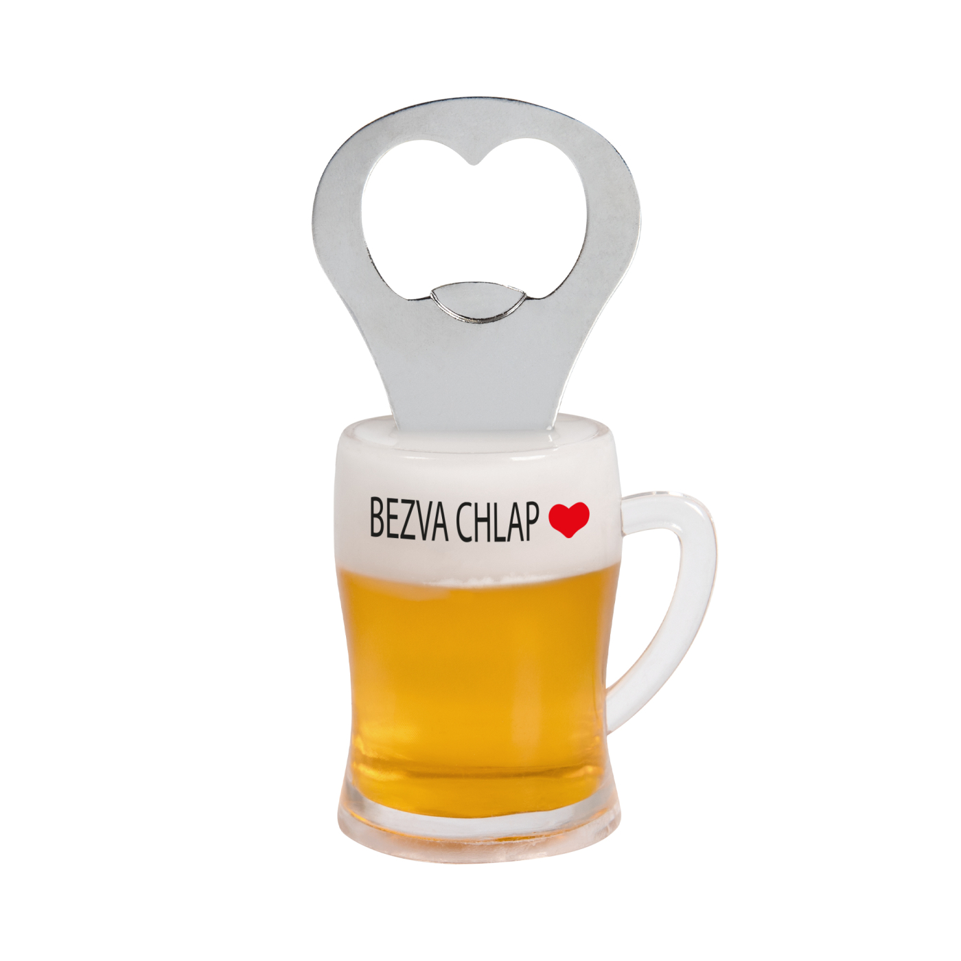 Magnetický otvírák s realistickým půllitrem piva místo rukojeti a vtipným vzkazem či věnováním.