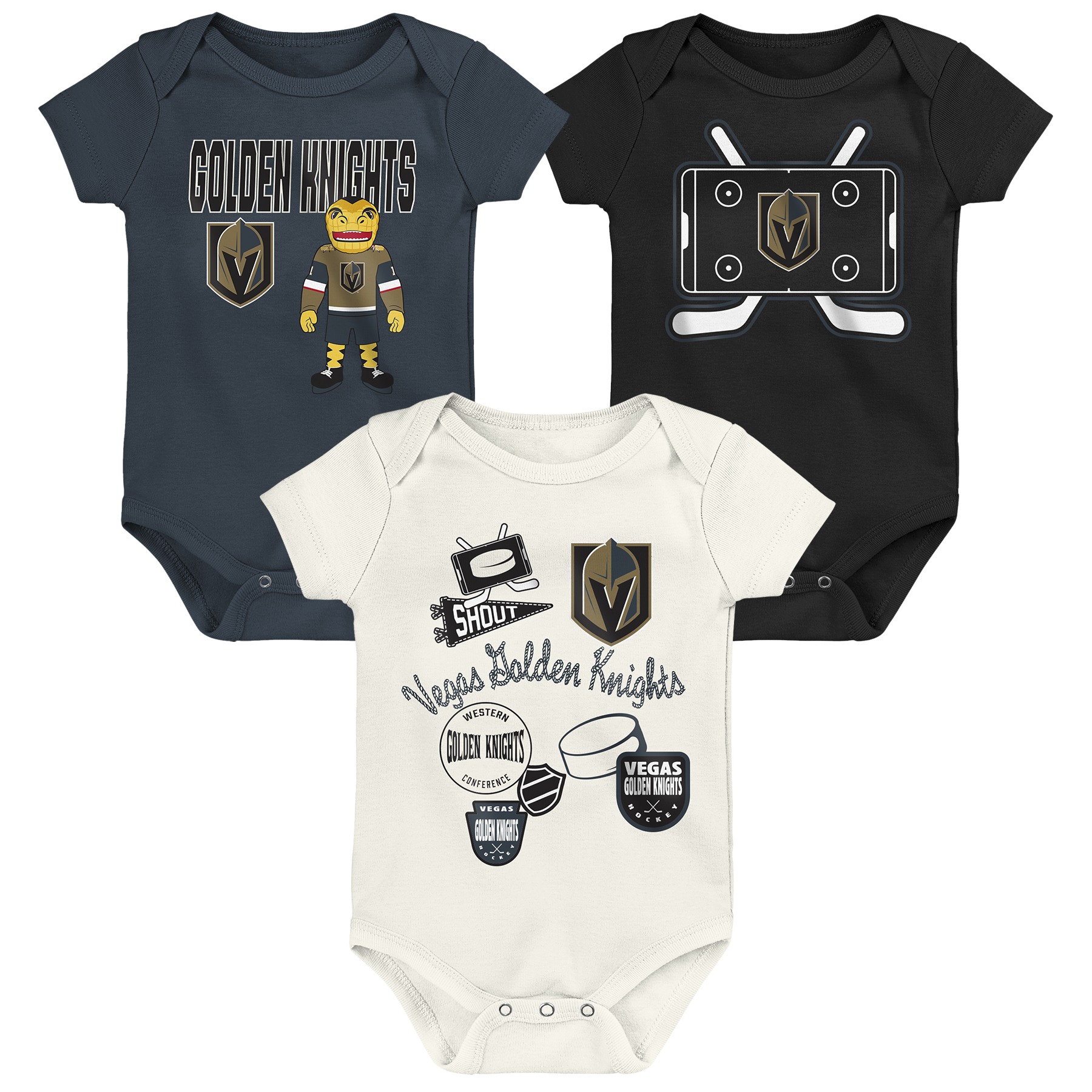 Outerstuff Dětské body Vegas Golden Knights NHL Littlest Player 3Pk Creeper Se Velikost: Batole 6-9 Měsíců