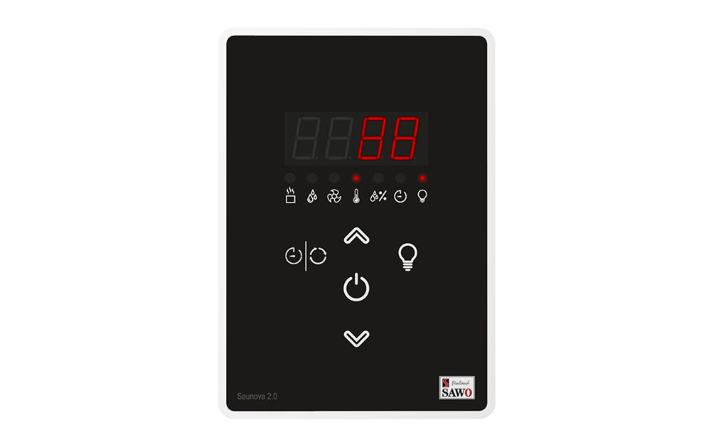 Kontrolní jednotka Saunova 2.0 pro malá saunová kamna do 9 kW. Ovládání lze umístit přímo v sauně nebo i zvenčí. Jedná se o inteligentní systém, který je schopný vypnout topné těleso po dosažení požadované teploty. Zároveň udržuje topné těleso v rovnováze a tím snižuje kolísání teploty.