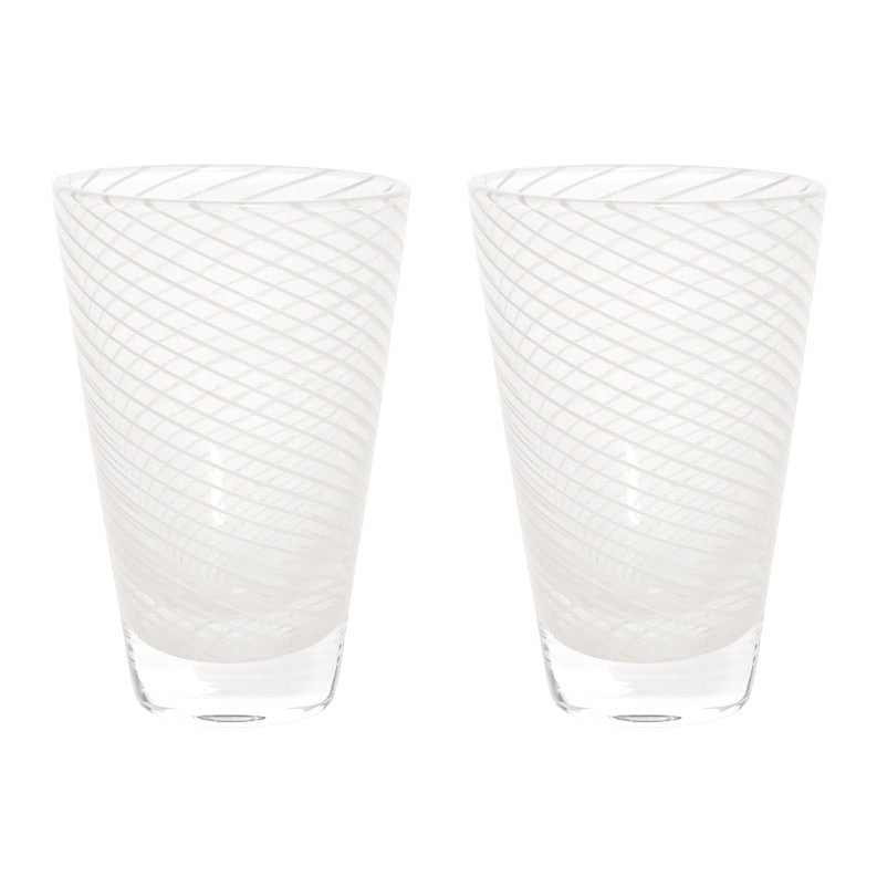 Jemný stáčený vzor v mléčně bílém odstínu připisuje skleničkám skutečně atraktivní vzhled. Tyto tenké linky se se kříží a stáčí po celém obvodu a díky nim získávají sklenice jakousi dynamiku. Tento pohyb a plynulost zachycené v každém střetu linek vytváří unikátní vizuální podívanou, navozující pocit klidu a harmonie. objem 250 ml / průměr 7 cm / výška 10,5 cm Ručně foukané sklo - ve skle se mohou vyskytnout bublinky.