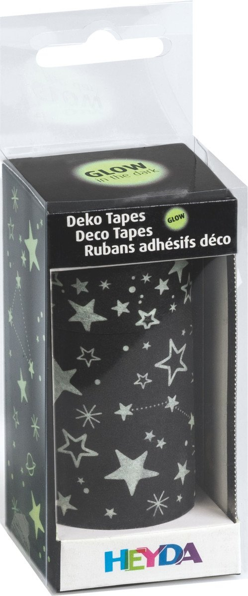 Páska lepicí papírová obsahuje role ve 2 velikostech (3 m × 15 mm, 3 m × 45 mm). Motivy se světelným efektem ve tmě! Můžete s ní ozdobit různé výrobky při tvoření - kětináče, vázy, svícny, stojánky. Dozdobení různých deníků, zápisníků, památníků... Na přední straně krabičky jsou zoubky k odtržení lepenky.