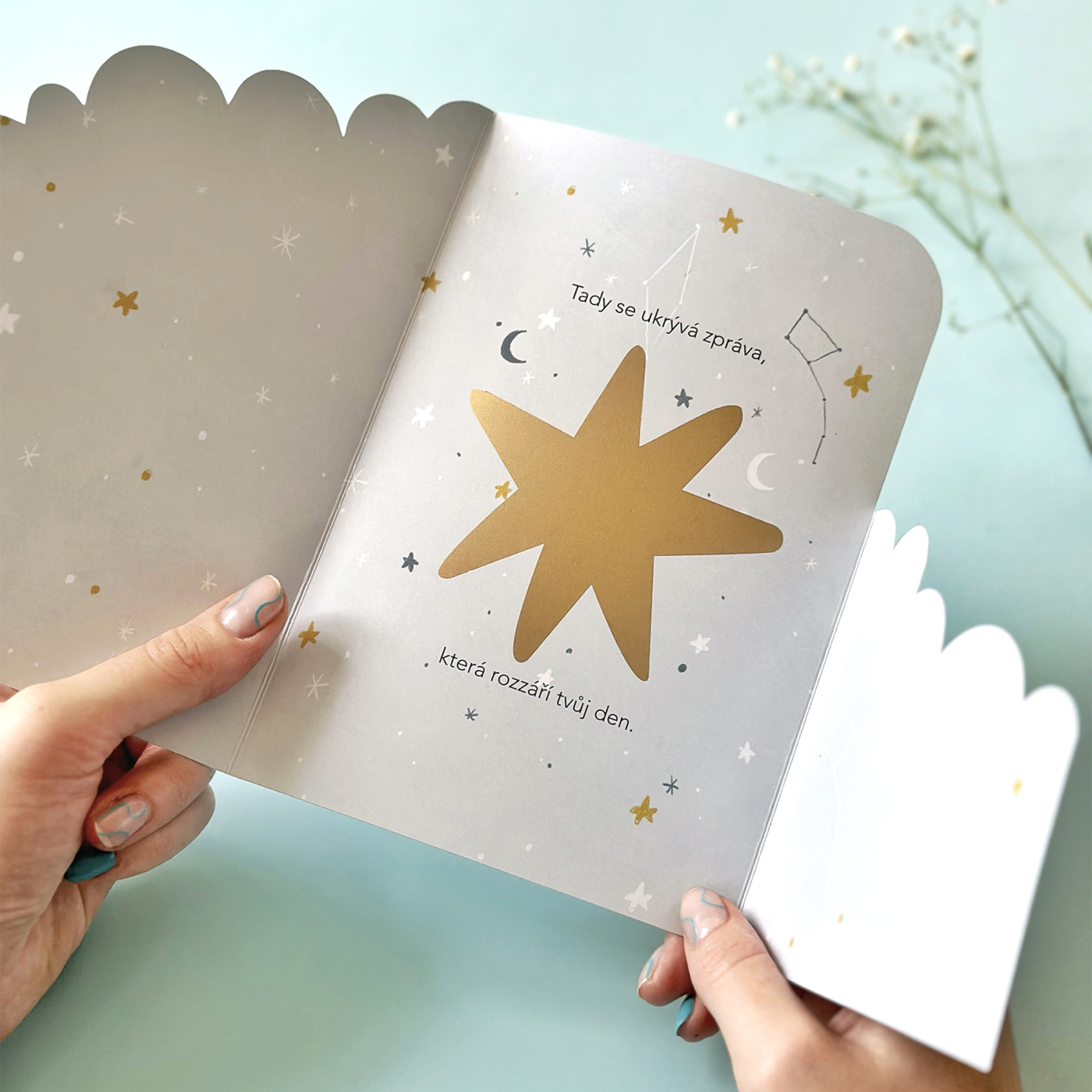 Originální stírací přáníčko, kterým lze dědečkovi oznámit těhotenství. Text uvnitř: "Tady se ukrývá zpráva, která rozzáří tvůj den. Budeš dědeček!" Rozměry: 19,5 × 13,5 cm