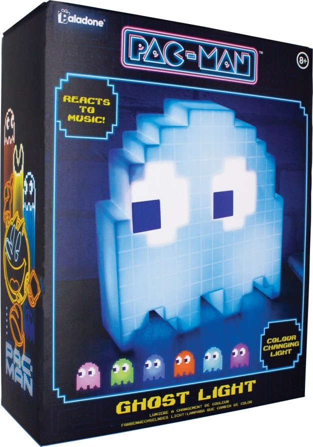 Dekorativní LED lampa Pacman umožňuje nastavit až 16 barev. Světlo je napájeno pomocí USB kabelu, reaguje změnou barvy na zvuky.