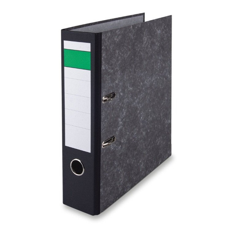Kartonový pákový pořadač s mramorovým potahem. Pořadače jsou vyrobené z ekologicky šetrné lepenky, potažené mramorovým papírem po vnitřní i vnější straně. Hřbet pořadačů je potažen papírem s vysokou pevností a tažností. Hřbet 80 mm, formát A4, kapacita 600 listů, Rado zámek, hřbetní úchyt a kapsa na štítek.