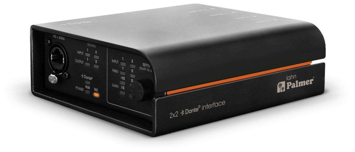 2x2 Dante rozhraní, napájení dvou analogových mikrofonních nebo linkových signálů do sítí Dante, konverze signálů Dante pro mixážní pulty, zesilovače, reproduktory atd.. čtyřstupňová regulace zesílení a fantomové napájení 48 V na kanál