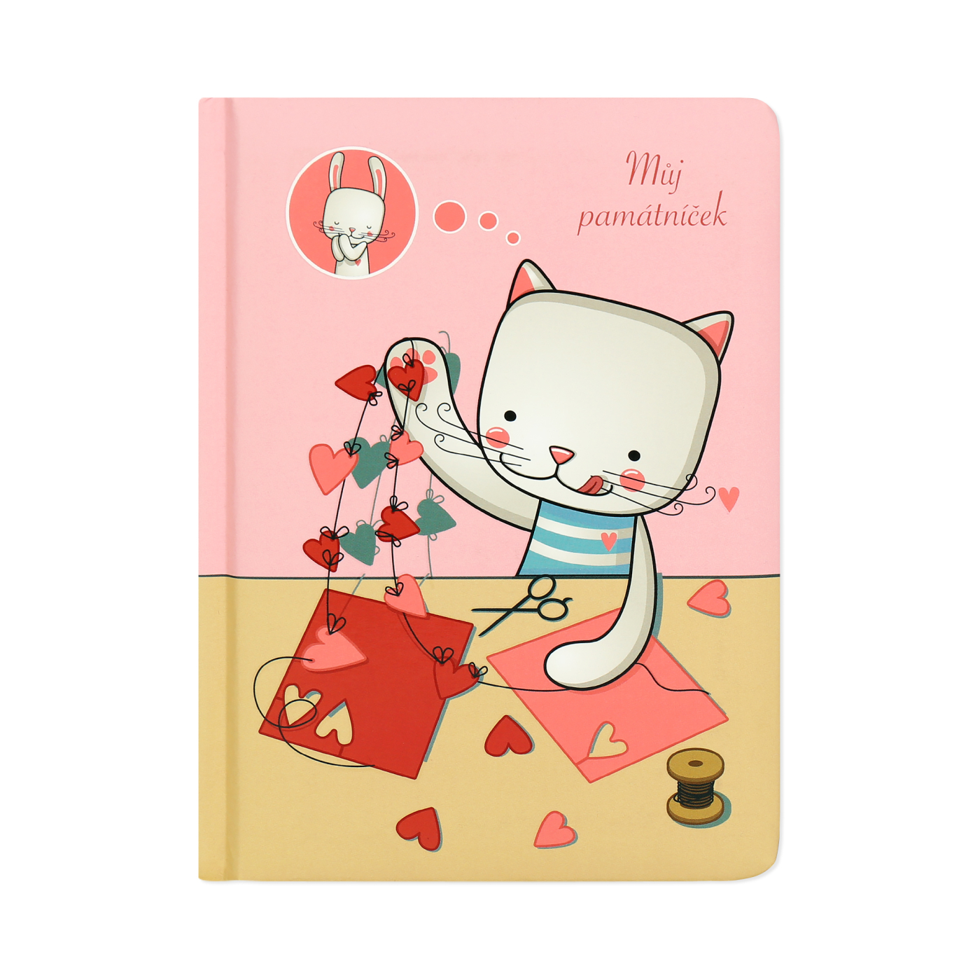 Památník s veselými motivy ve formátu A6 má pevné desky s měkkým povrchem a 60 prázdných listů. Rozměry: 11,5 × 15,5 × 1,5 cm