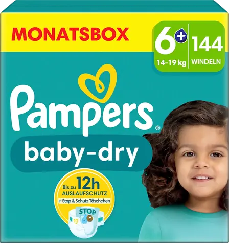 Pampers Baby Dry 14-19kg (144 ks) / plenkové kalhotky / velikost 6+ (14-19kg) (8700216291149)