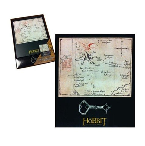 Replika mapy k pokladu spolu s klíčem k Ereboru potěší každého fanouška Hobita. Rozměr mapy je 15 × 19 cm. Materiál: kov, dřevo, papír. Oficiálně licencováno.