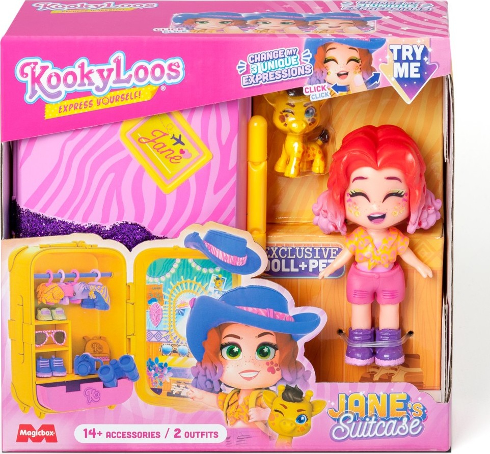 Jste připraveni vyrazit na cestu? Kufřík KookyLoos obsahuje vše, co potřebujete, abyste se skvěle bavili. Čekají na vás až 4 modely ke sbírání! Milující dobrodružství Jane je nezastavitelná! Jejím přirozeným prostředím je savana a na safari stará o zvířata a chrání je. Pomozte jí vybrat oblečení, aby při východu slunce mohla vydat na expedici a trávit čas s přáteli, dokud na obzoru neobjeví měsíc. Má také tři různé obličeje, které můžete změnit jedním kliknutím. Vše si můžete sbalit do kufru a vzít s sebou!