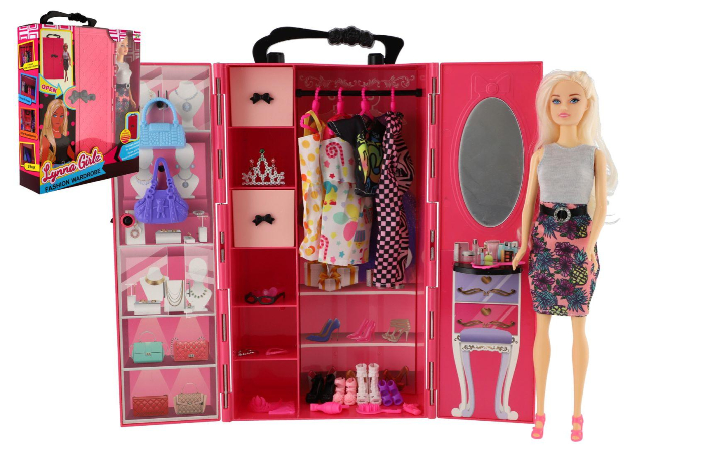 Panenky zaručeně potěší naprostou většinu malých holčiček. Kterou holčičku by nebavila hra s panenkami? Panenka je velikosti 30 cm. Panenku můžete učesat a převlékat dle vlastní fantazie. Součástí balení je šatní skříň s doplňky jako jsou šperky, kabelka, boty a spoustu dalšího. Rozměry balení 26 x 32 x 8 cm. Vhodné pro děti od 3 let.