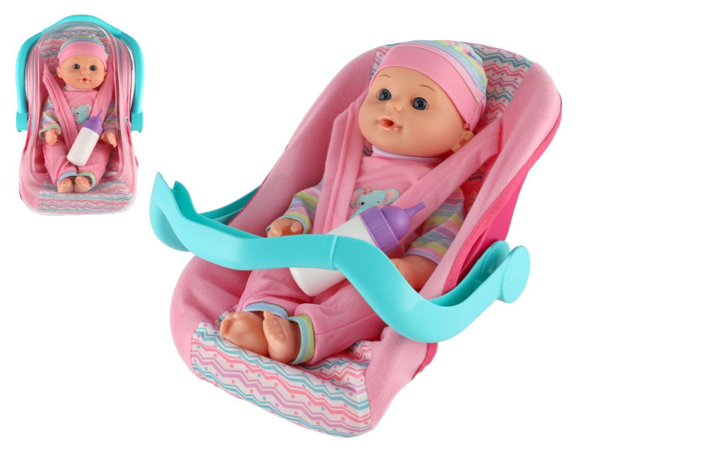 Roztomilé miminko v krásné autosedačce, vajíčku. Každá holčička si jistě tuto panenku zamiluje a žádný na žádný výlet už bez miminka nevyrazí. Součástí balení je i lahvička, kterou samozřejmě sebou každá zodpovědná maminka nutně potřebuje. Velikost miminka: 30 cm Vhodné pro děti od 3 let