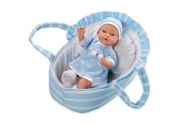 Miminko značky Arias po vyndání dudlíku pláče a říká "mama, papa" 3x po sobě. Pláč miminka můžete zastavit vrácením dudlíku do pusinky. Miminko příjemně voní, má měkké tělo, 28 cm, na baterie, v praktické tašce.