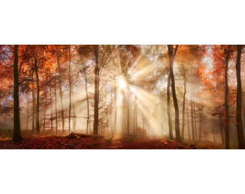 Panoramatický obraz na zeď 140x60 cm se stane dominantou každého interiéru. Snová lesní scenérie vnese do vašeho domova uklidňující atmosféru.