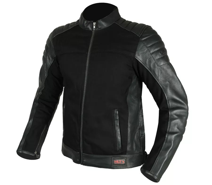 Stylová a bezpečná motocyklová bunda, která kombinuje kvalitní kůži a pevný textil. Díky certifikovaným chráničům a komfortním detailům nabízí vysokou ochranu i pohodlí.\r \r BEZPEČNOST\r - CE certifikace – motocyklový oděv třídy AA dle EN 17092-3:2020\r - Vybavena CE Level 2 chrániči ramen a loktů\r - Připravena na vložení zádového chrániče\r \r MATERIÁLY\r - Vrchní materiál: 40 % hovězí kůže HLT Leather, 60 % textil (Canvas)\r - Vnitřní podšívka: 100 % polyester\r \r KOMFORT\r - Měkký neopren na límci a manžetách pro příjemné nošení\r - Dvě vnější kapsy a dvě vnitřní kapsy na mobil nebo peněženku\r - Zipové zapínání na rukávech