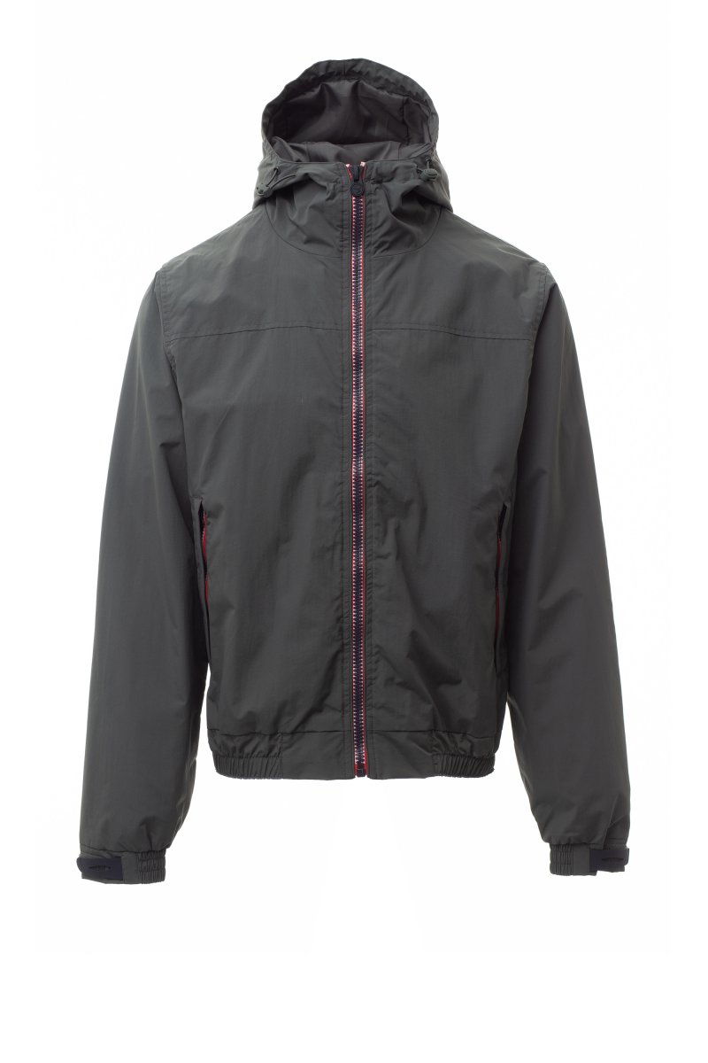 • Pánská lehká bunda s kapucňou, elastický pas, elastické a nastavitelné manžety, kontrastní zip, dvě vnější kapsy se skrytým zipem; podšívka ze síťoviny, jedna vnitřní kapsa na zip s otvorem pro sluchátka s mikrofonem, zip na ramenou a na hrudi pro snadnější tisk a vyšívání.