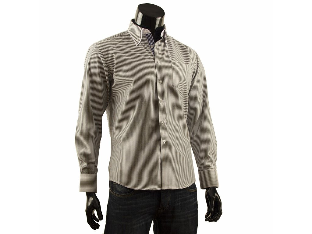 Pánská elegantní košile s dlouhým rukávem a proužky. Košile má dvojitý límeček. Vnitřní strana límce, klopa a vnitřní strany manžet jsou kostkované. Materiálové složení: 100% bavlna Velikost: M L XL XXL 3XL 4XL 5 XL Šířka přes hrudník (A) 56 cm 58 cm 60 cm 62 cm 64 cm 66 cm 68 cm Délka (B) 78 cm 80 cm 82 cm 83 cm 84 cm 85 cm 86 cm Šířka ramen (C) 50 cm 51 cm 52 cm 53 cm 54 cm 55 cm 56 cm Délka rukávu (D) 65 cm 66 cm 67 cm 68 cm 69 cm 69 cm 70 cm