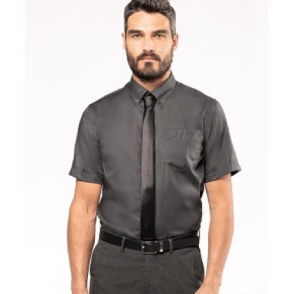 Pánská košile,krátký rukáv, 100% bavlna mikro krep 120g/m2 - nežehlivá úprava,límečkové knoflíčky,stejnobarevné knoflíky přišité křížovým stehem,vlevo náprsní kapsa,zadní sedlo a 2 protizáíhyby pro lepší pohodlí,plně podlepené švy,2 náhradní knoflíky.tvarovaný spodní lem Velikost - S - 4XL Barva - white,black,zinc a bright sky