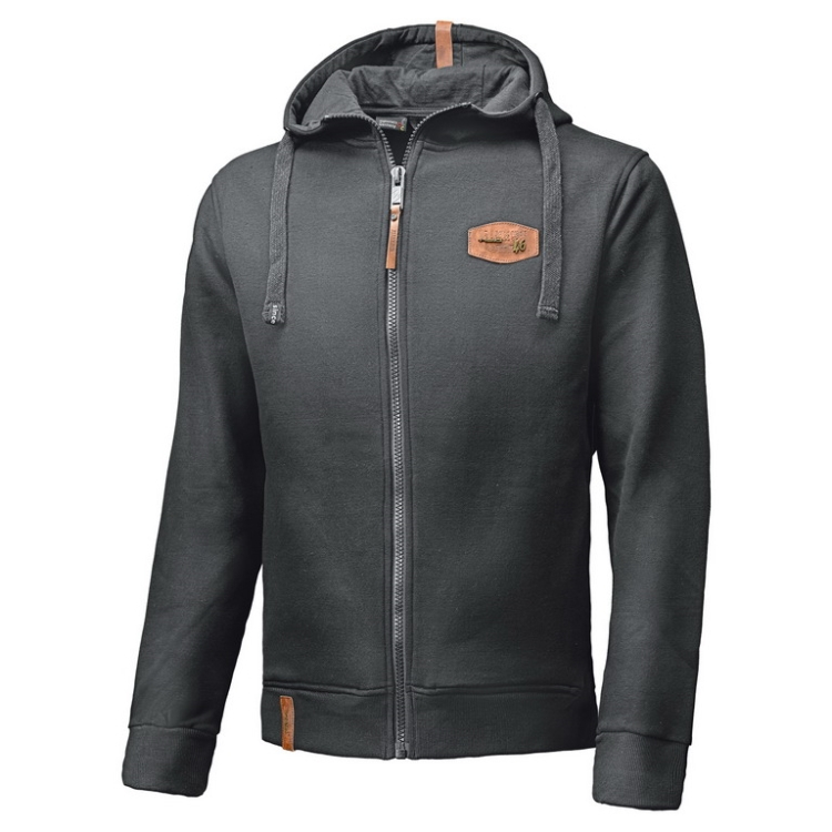 HELD 46 Pánská mikina Vlastnosti: kapuce elastické lemy kolem zápěstí a v pase dvě vnější kapsy zapínání bundy zipem mix bavlny a polyesteru černá Pro další informace kliknětě na odkaz Tabulka velikostí Held Péče a materiály Held