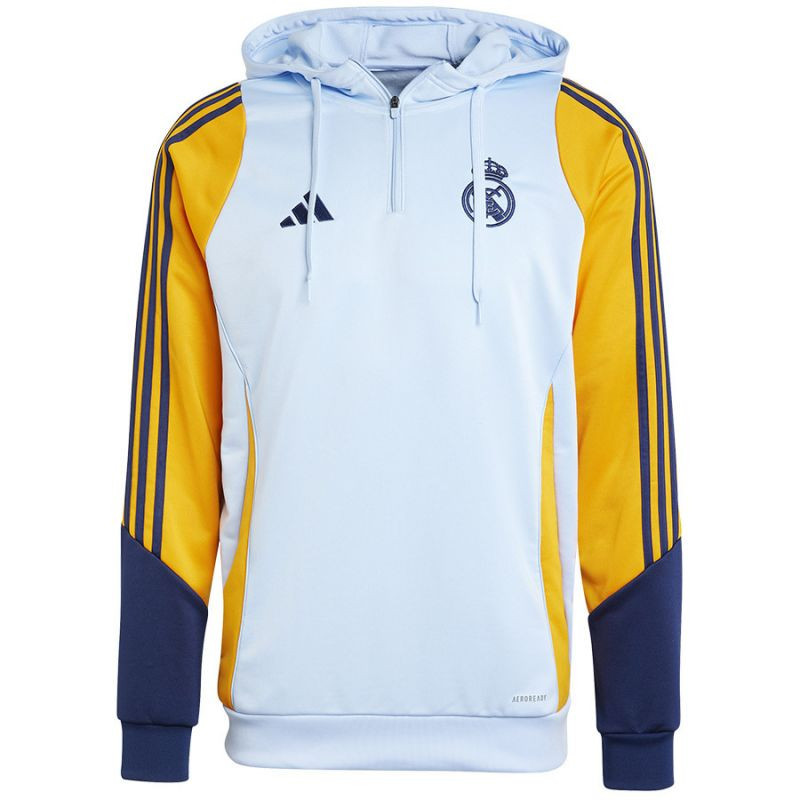 Adidas Real Madrid Training Hoody M IT5091 mikina Vlastnosti: značková mikina adidas vyrobena pro fanoušky Realu Madrid pro muže model přes hlavu integrovaná kapuce krátký zip u krku elastické manžety na rukávech standardní střih měkký materiál Barva: bílá