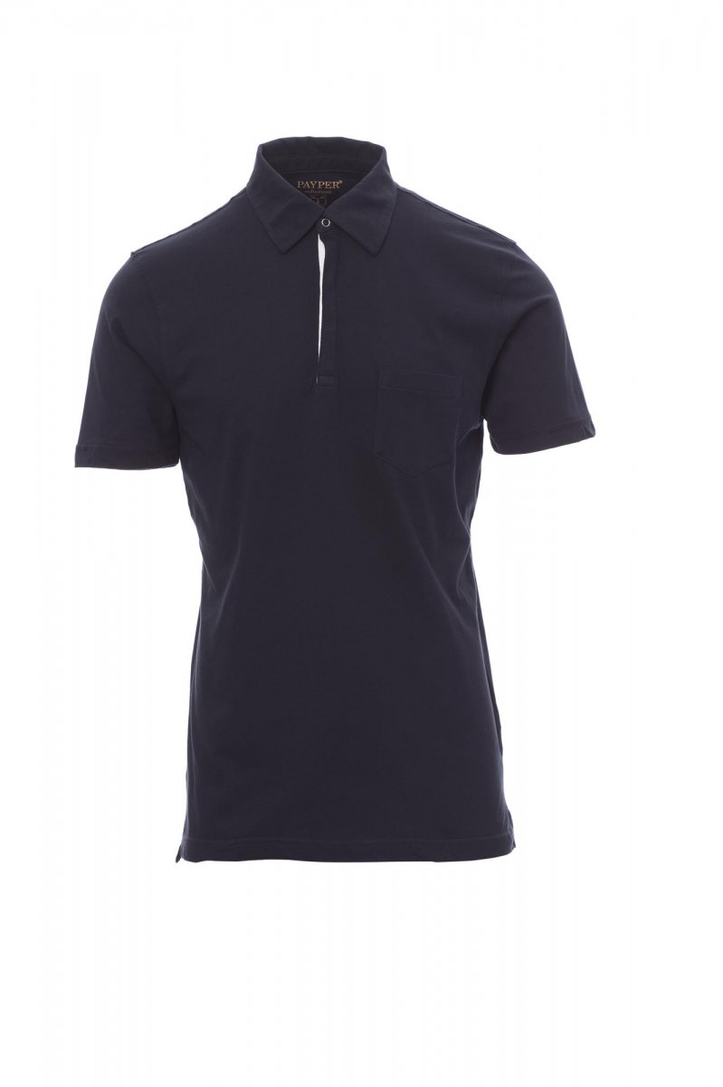 Pánská polokošile s krátkým rukávem a třemi, zapínáním na patentky, hlubokým výstřihem, kapsou, límečkem v tričku ve stylu trička, etiketou, vnitřní páskou na krku