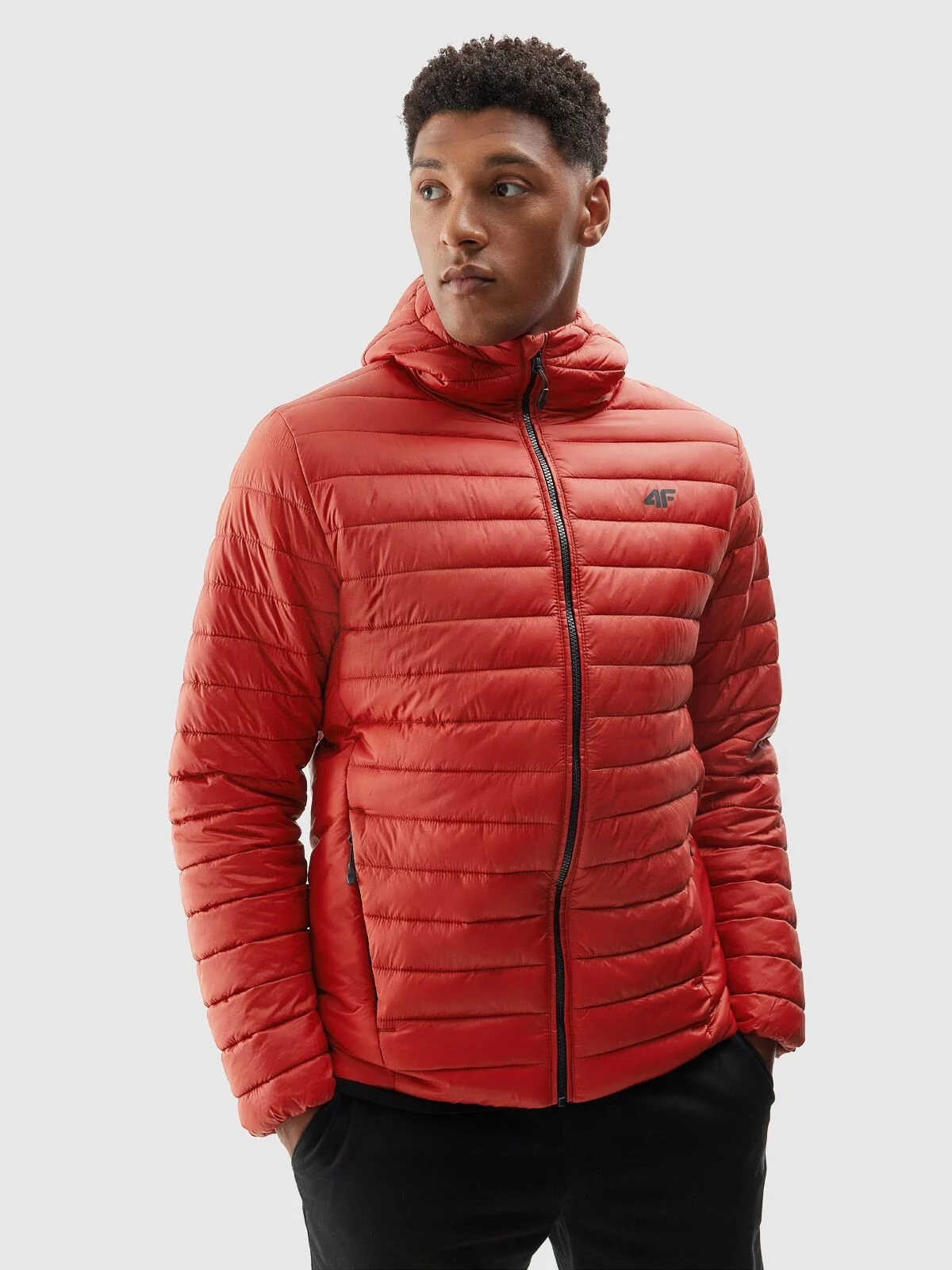 Pánská péřová bunda 4F je lehká a má pohodlný střih, který neomezuje v pohybu. Bunda s kapucí má měkkou a lehkou péřovou výplň ze 100% recyklovaného polyesteru. Vnější materiál jsme pokryli hydrofobní vrstvou, abychom zabránili nadměrné absorpci vlhkosti. Pohodlná neodnímatelná kapuce vás ochrání před chladem a kapsy na přední straně pojmou nezbytné drobnosti. bez podšívky manžety a spodní část s elastickou gumou neodnímatelná kapuce pro dodatečnou ochranu proti větru 2 boční kapsy se zapínáním jednosměrný zip s vnitřní légou, která brání proti větru hydrofobní impregnace materiálu omezuje absorpci vlhkosti zvenčí péřová výplň ze 100% recyklovaného polyesteru pro optimální tepelný komfort