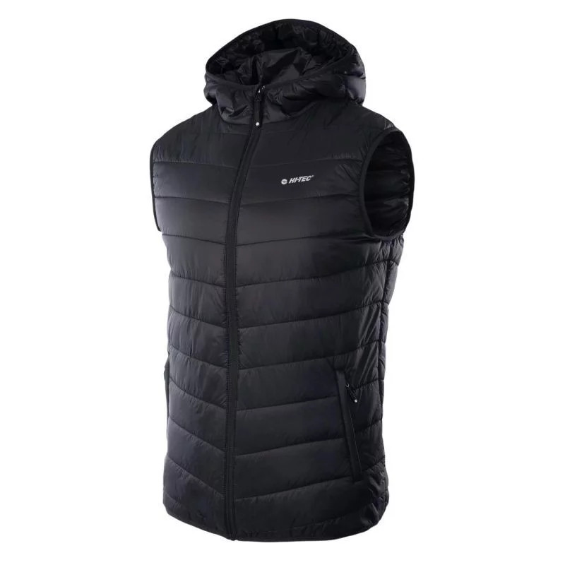 Vesta Hi-tec sinlus Vlastnosti: Střih vesty pro pohodlné nošení Lehké vláknité výplně pro účinnou ochranu před chladem Integrovaná kapuce chránící hlavu před větrem a chladem Praktické boční kapsy na zip Po uzavření zipu je zip chráněn látkovou klopou Pečlivé lemování pružným lemováním Křížové prošívání pro zajištění rovnoměrného rozložení náplně Reflexní prvky viditelné pro řidiče na dálku Materiál: Vnější materiál: 100% nylon Podšívka: 100% nylon Výplň: 100% polyester 160 g/m2 Barva: černá