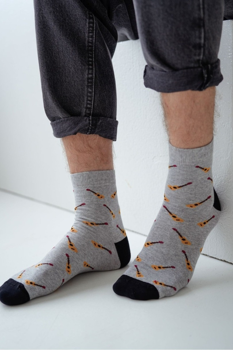 Přidejte svému stylingu styl a humor s těmito pánskými 3/4 ponožkami „Malé kytary” 1153.047 od renomované značky MILENA. Jejich originální design s kytarami je návrhem pro milovníky hudby a netradiční módy. Jsou vyrobeny z kvalitní bavlny (75 %) s přídavkem polyamidu (20 %) a elastanu (5 %), zaručují komfort nošení, pružnost a odolnost. Skvěle se hodí pro každodenní nošení i jako netradiční dárek..