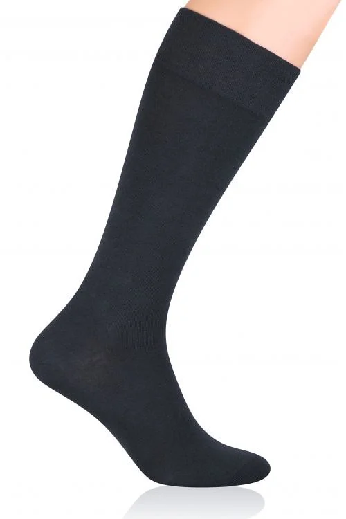 Pánské bavlněné podkolenky s přídavkem elastických vláken. Podkolenky jsou hladké, jednobarevné a mají lem, který netlačí. Složení: 72 % bavlna, 25 % polyamid, 3 % elastan.