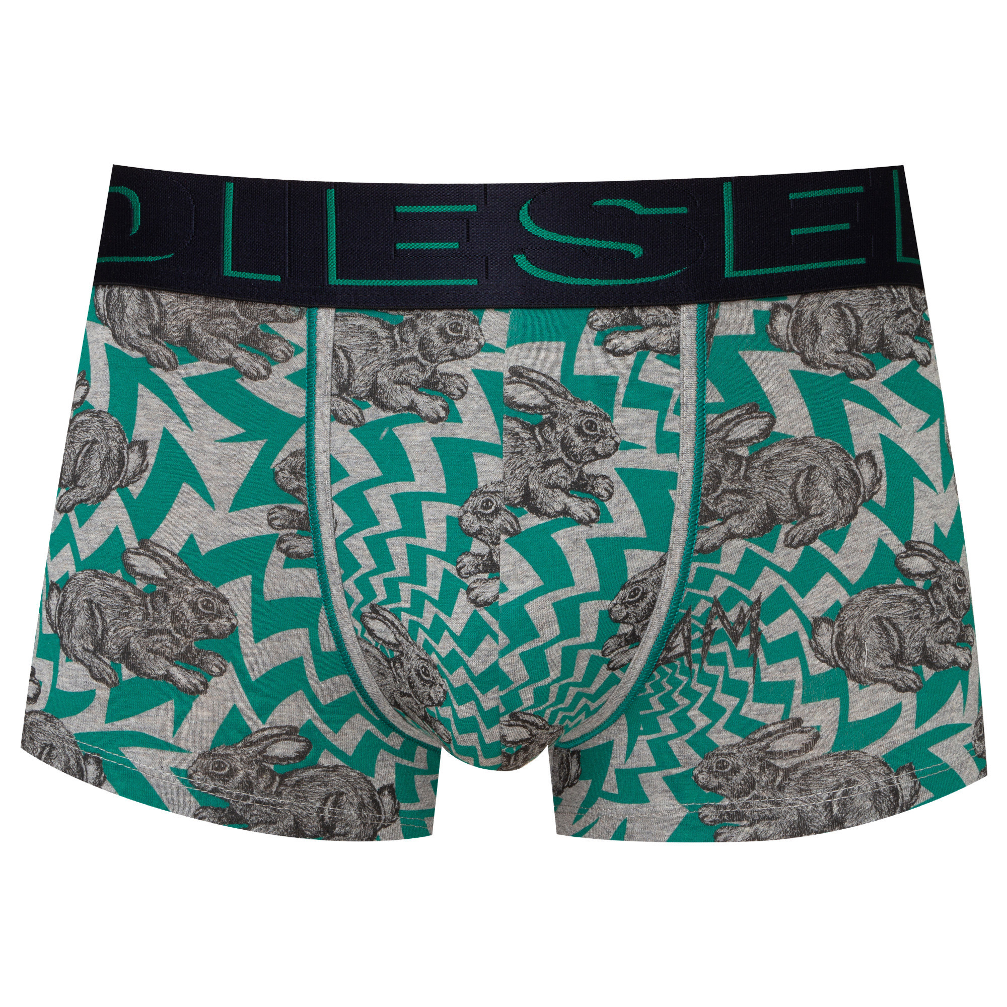 Stylové pánské boxerky DieselPánské boxerky značky Diesel jsou nejen stylové, ale také velmi pohodlné díky příjemnému materiálu a gumě v pase s logem značky. Vzor s králíky dodává boxerům originální vzhled.Tyto boxerky jsou vyrobeny z 95% bavlny a 5% elastanu, což zajišťuje jejich vysokou kvalitu a dlouhou životnost. Balení v krabičce je ideální i jako dárek pro vaše blízké.VelikostMLXLXXLPas (cm)78-8384-8990-9596-101 Prát na 30°C, nesušit v sušičce, nežehlitZemě původu: Čína