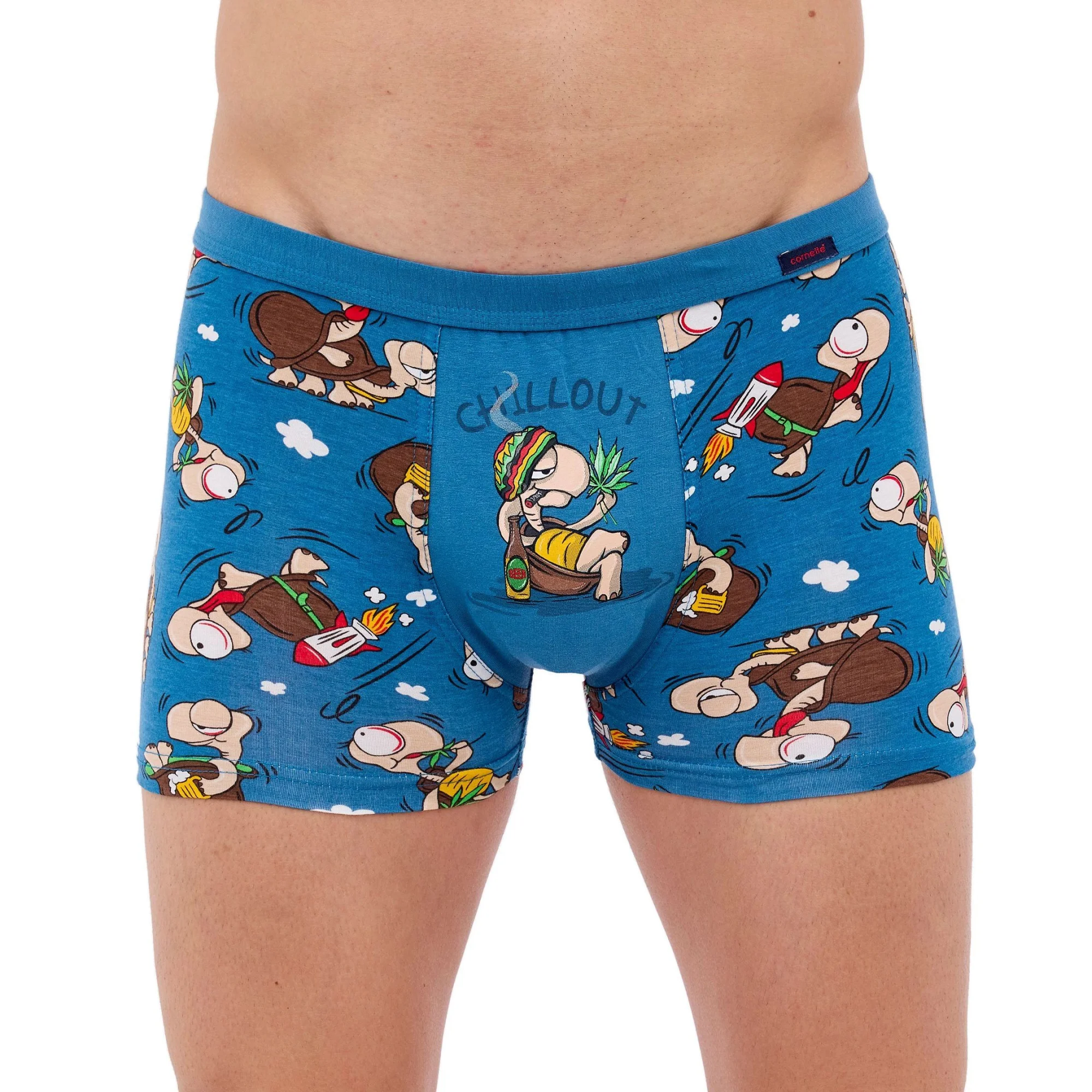 Pánské boxerky 280/234 Tatoo Chillout CORNETTE - světle modrá barva - z vysoce jakostní bavlny - ozdobené barevným zábavným potiskem - guma s plochým švem - obšitá bavlnou - lem nohaviček netlačí do stehen, proto jsou boxerky při nošení pohodlné a komfortníMateriálové složení: 95% bavlna + 5% elastan Velikosti pro muže S M L XL XXL 3XL 4XL 5XL Obvod hrudníku (cm) 92-96cm 96-100cm 100-104cm 104-108cm 108-112cm 112-116cm 116-122cm 122-128cm Obvod pasu (cm) 82-86cm 86-90cm 90-94cm 94-98cm 98-102cm 102-106cm 106-112cm 112-118cm Výška (cm) 164-170cm 170-176cm 176-182cm 182-188cm 188-194cm 188-194cm 188-194cm 188-194cm Velikosti pro ženy S M L XL XXL 3XL 4XL 5XL Obvod hrudníku (cm) 88-92cm 92-96cm 96-100cm 100-104cm 104-108cm 108-112cm 112-118cm 118-124cm Obvod pasu (cm) 72-76cm 76-80cm 80-84cm 84-88cm 88-92cm 92-96cm 96-102cm 102-108cm Obvod boků (cm) 92-96cm 96-100cm 100-104cm 104-108cm 108-112cm 112-116cm 116-122cm 122-128cm Výška (cm) 158-164cm 164-170cm 164-170cm 170-176cm 176-182cm 176-182cm 176-182cm 176-182cm Dětské velikosti (roky) 2-3 3-4 5-6 7-8 9-10 11-12 13-14 Obvod hrudníku (cm) 50-54cm 54-58cm 58-62cm 62-66cm 66-72cm 72-80cm 80-88cm Obvod pasu (cm) 48-52cm 50-54cm 52-56cm 54-58cm 56-62cm 60-68cm 64-72cm Výška (cm) 86-92cm 98-104cm 110-116cm 122-128cm 134-140cm 146-152cm 158-164cm