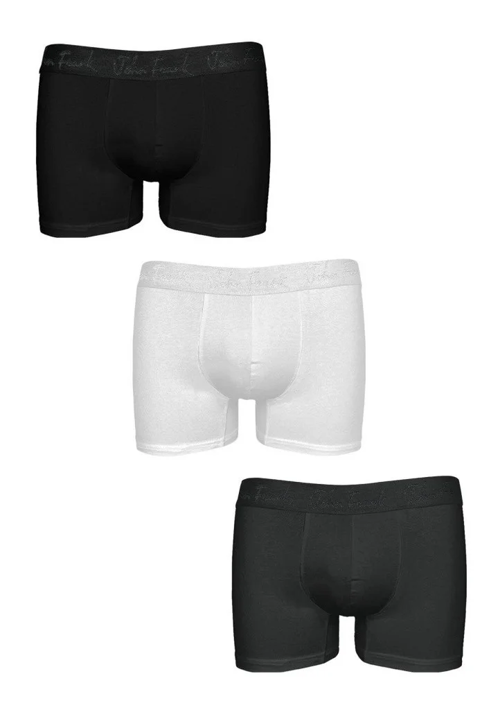 Pánské boxerky značky John Frank z materiálu s vysokým obsahem modalu. Boxerky jsou velmi příjemné, pohodlné při nošení a vzdušné. V pase je pohodlná širší guma s logem po obvodu. Balení obsahuje troje boxerky v různých barvách. Materiálové složení: 95% mikromodal, 5% elastan.