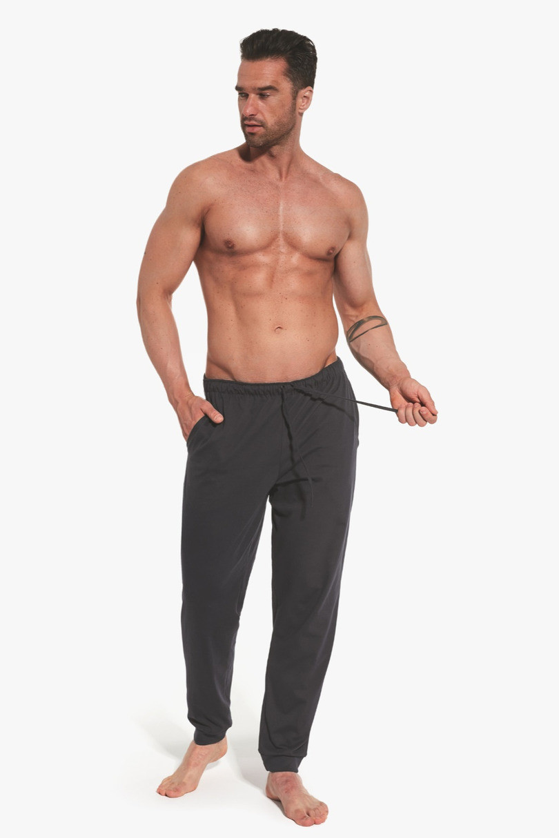 Pánské kalhoty 331 J/25 jsou pohodlným kouskem oblečení na spaní nebo domácí odpočinek. Jsou vyrobeny z kvalitní, měkké a prodyšné bavlny a poskytují pohodlí po celou noc. Jsou vybaveny praktickými kapsami a elastickým pasem lemovaným bavlnou a mají dodatečnou šňůrku, která umožňuje upravit obvod pro dokonalé přizpůsobení. Dlouhé nohavice poskytují teplo a díky klasickému střihu vypadají kalhoty esteticky a jsou univerzální..
