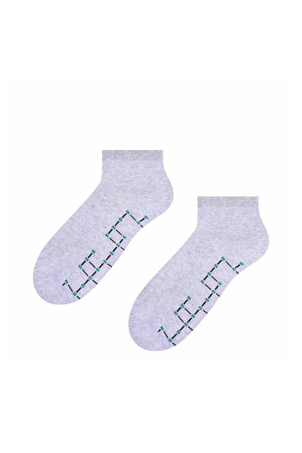 Pánské kotníkové ponožky s přídavkem lycry. Mají ploché švy a nestahující lem. Originální vzor se skvěle hodí ke sportovnímu stylu. Dostupné barvy: bílé a černé (jednobarevné nebo se vzory), bílé, šedé, jeans, černé, šedé s všivkami - vybírané náhodně