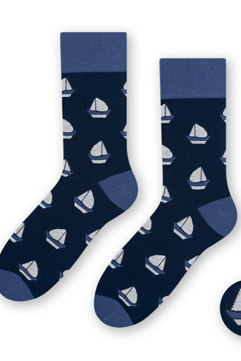 Pánské ponožky s námořnickými vzory, vyrobené z jemné a delikátní bavlněné příze s přídavkem elastických vláken. .
