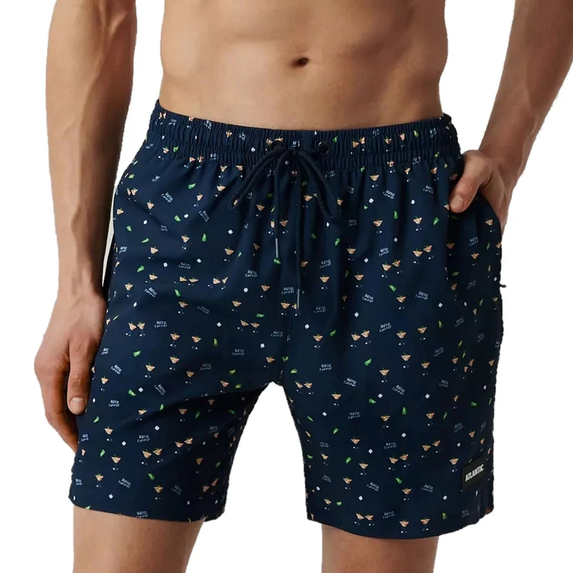 Pánské plavky 221 blue Atlantic - tmavě modrá barva - se vzorem - materiál s technologií 4 way stretch - v pase šňůrky k zavazování - na bocích kapsy - rychleschnoucí materiálMateriálové složení: 100% polyester