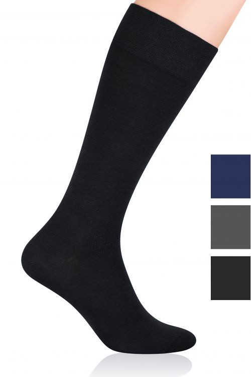 Pánské bavlněné podkolenky s přídavkem elastických vláken. Podkolenky jsou hladké, jednobarevné a mají lem, který netlačí. Složení: 72 % bavlna, 25 % polyamid, 3 % elastan.
