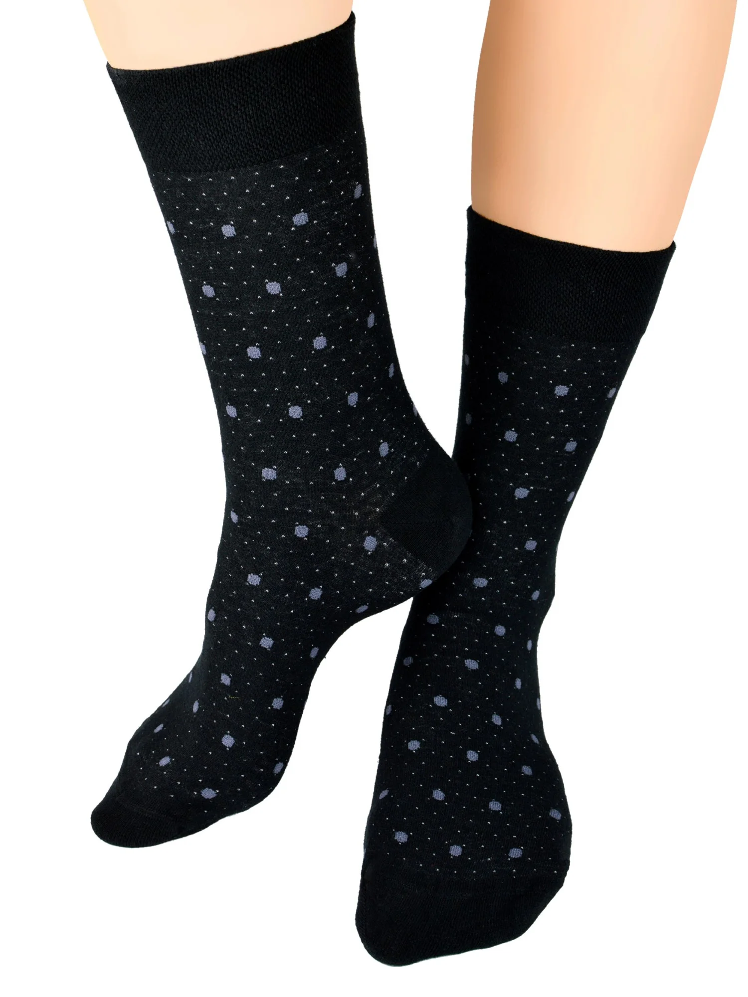 Pánské ponožky 006 M08 NOVITI - černá barva - z vysoce jakostní bavlny - se vzorem - ploché švy - netlaková manžeta pro maximální komfort a pohodlí - universální délka - vhodné k obleku i elegantní obuviMateriálové složení: 80% bavlna + 18% polyamid + 2% elastan