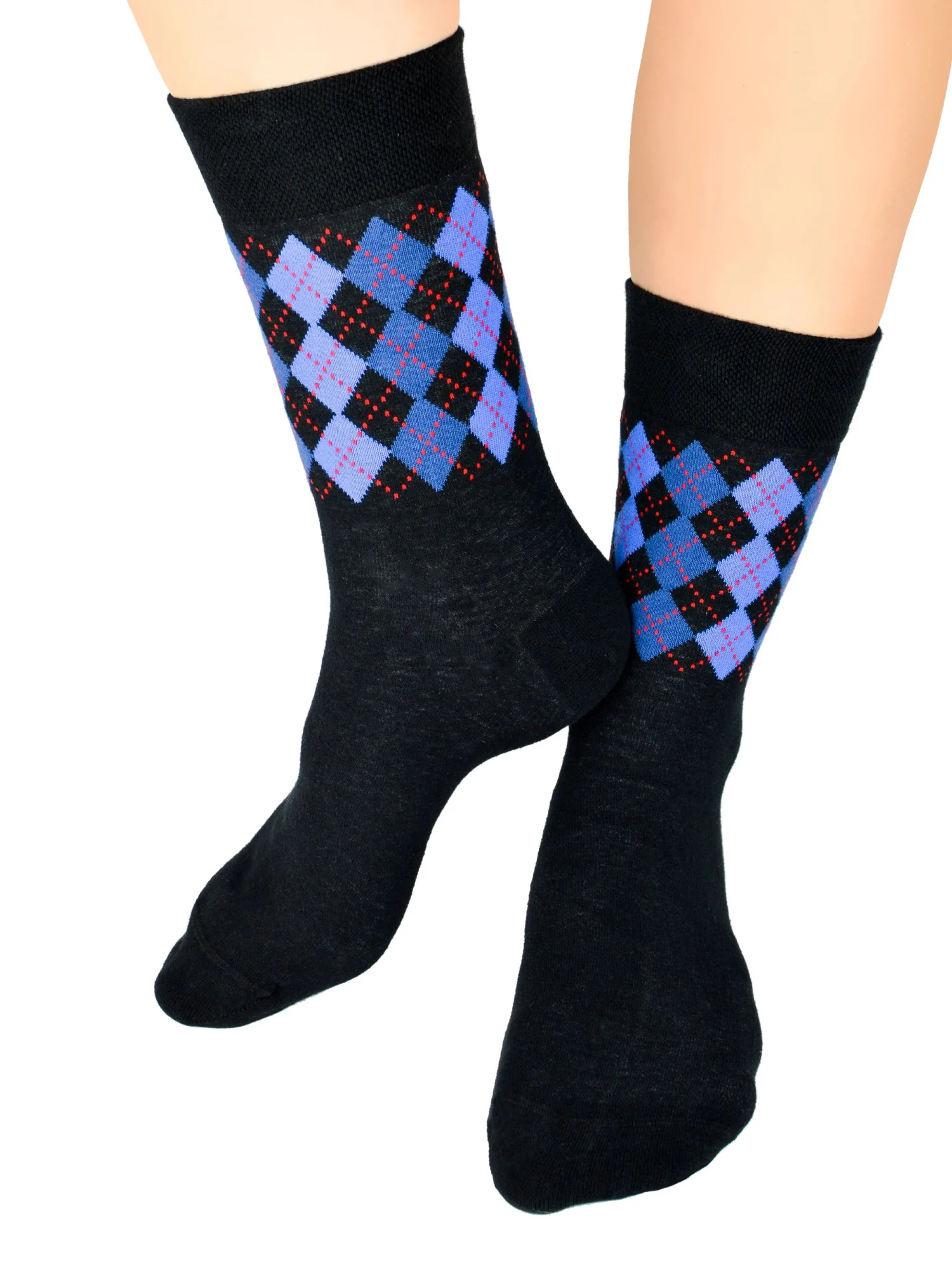 Pánské ponožky 006 M13 NOVITI - černá barva - z vysoce jakostní bavlny - se vzorem - ploché švy - netlaková manžeta pro maximální komfort a pohodlí - universální délka - vhodné k obleku i elegantní obuviMateriálové složení: 80% bavlna + 18% polyamid + 2% elastan