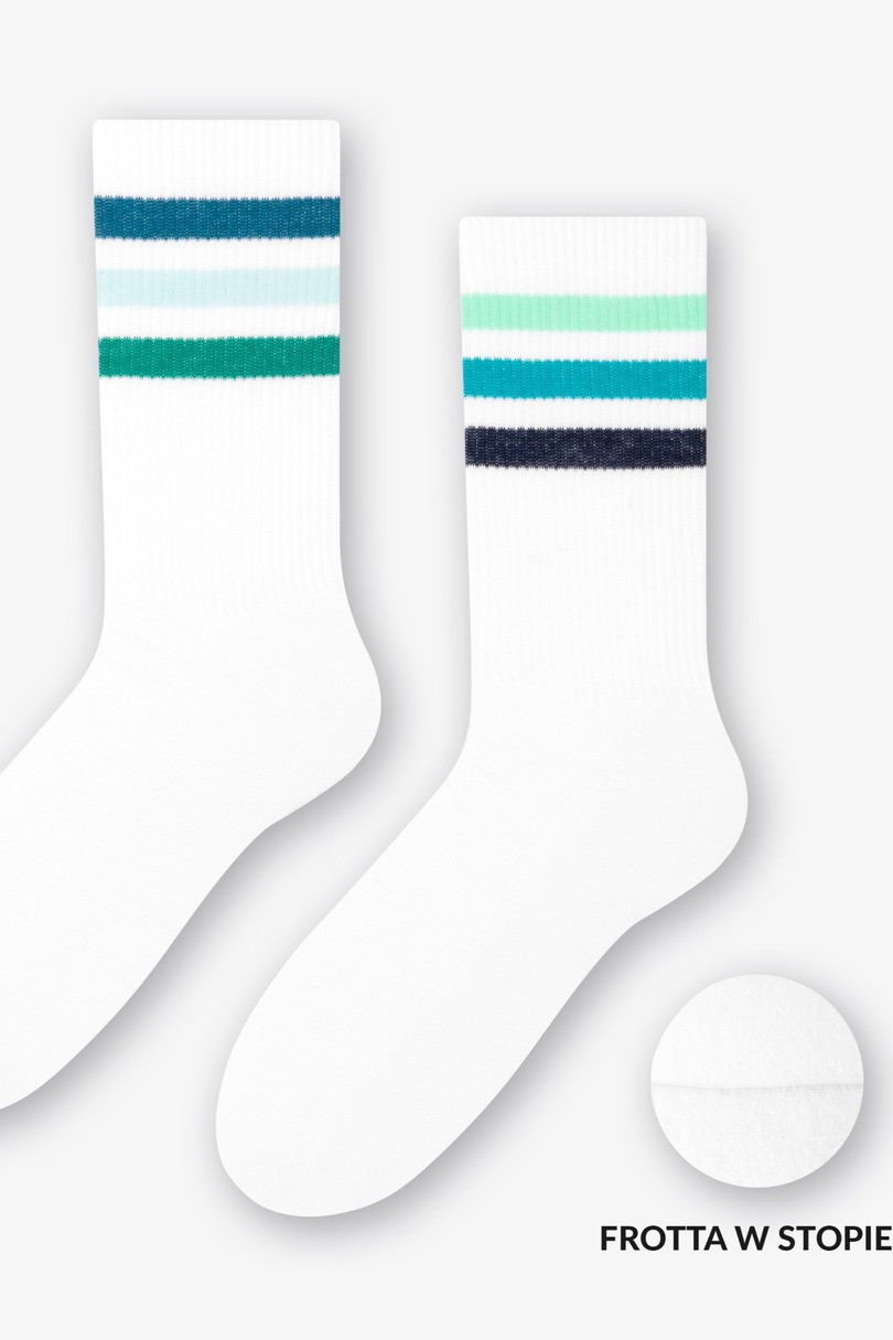 Sportovní ponožky s froté na chodidle. Složení: 71,5 % bavlna, 25 % polyamid, 3 % elastan, 0,5 % polypropylen.