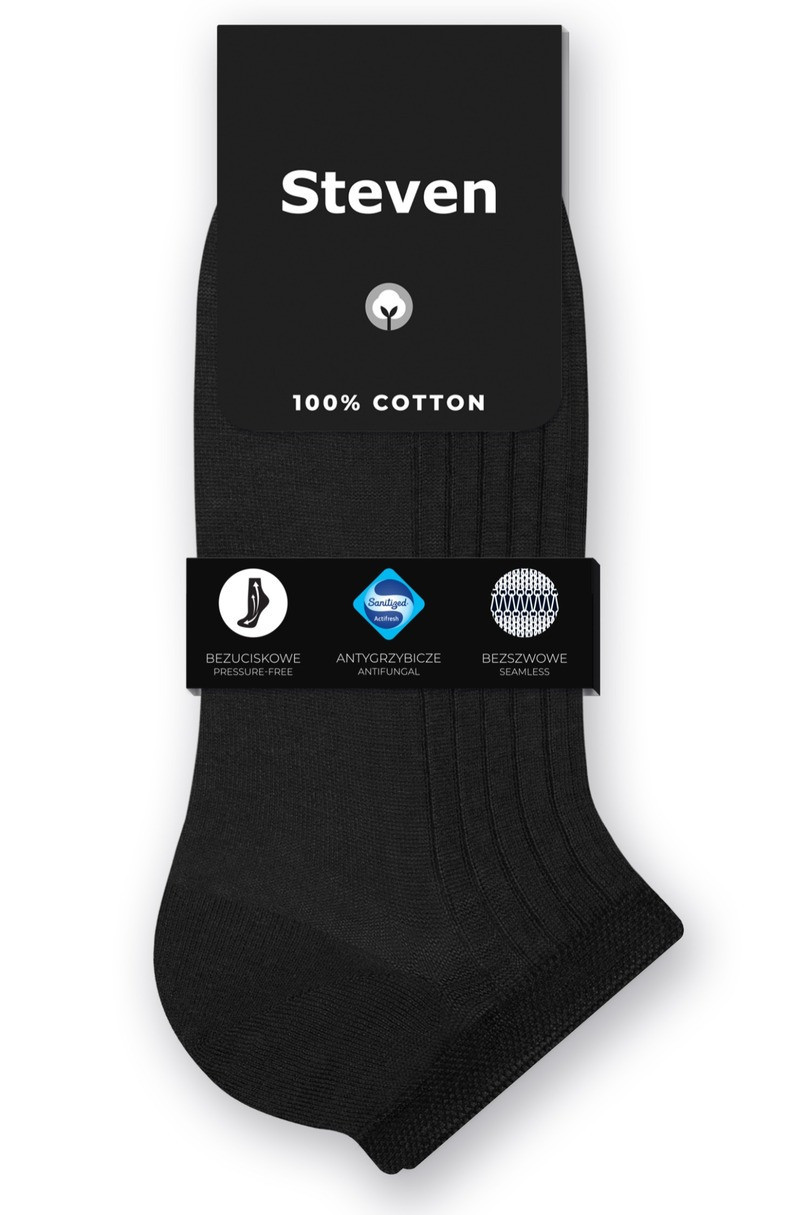 Hladké pánské ponožky, které jsou vyrobené z bavlny (100 %). Ponožky jsou vyrobené z velmi kvalitní bavlny SANITIZED, která snižuje bakteriální a mykotickou aktivitu a která neutralizuje nepříjemný zápach. Model má lem, který při nošení netlačí. Ponožky jsou díky bezešvé technologii pohodlné a komfortní. Model je měkký, pohodlný a je vhodný pro každodenní nošení.