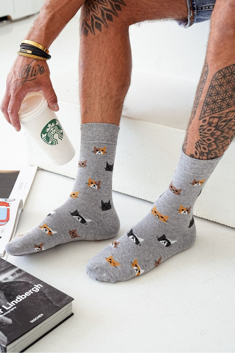 PÁNSKÉ PONOŽKY S KOČIČÍ HLAVOU 0125.096 GREY MELANGE 39-42