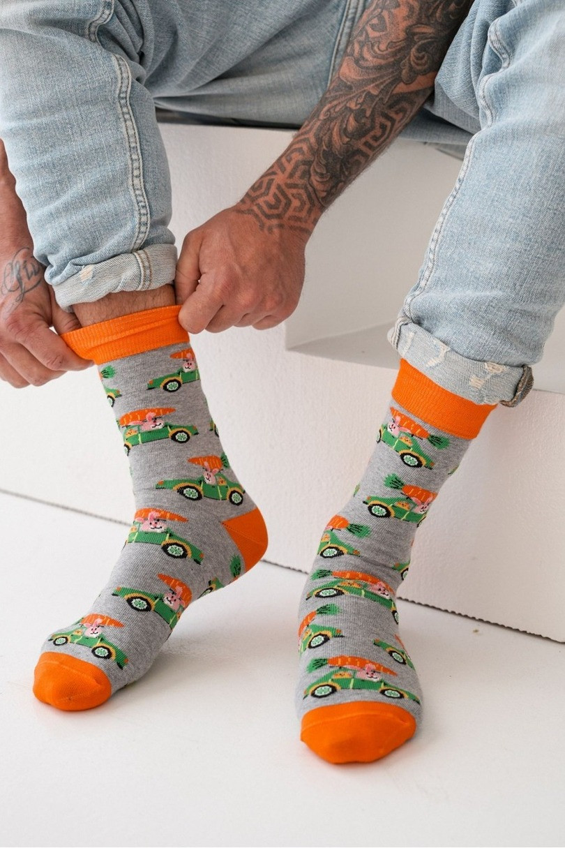 Oryginalne i stylowe skarpetki męskie AVANGARD KRÓLIK W AUCIE MILENA 0125.112 to doskonały wybór dla mężczyzn, którzy cenią sobie wygodę i niebanalny design. Wykonane z wysokiej jakości bawełny (75%) z domieszką elastanu (5%) i poliamidu (20%), zapewniają miękkość, elastyczność i trwałość. Zabawny wzór z królikiem w aucie doda charakteru każdej stylizacji, podkreślając indywidualny styl i poczucie humoru. Idealne na co dzień, do pracy, a także jako oryginalny prezent!