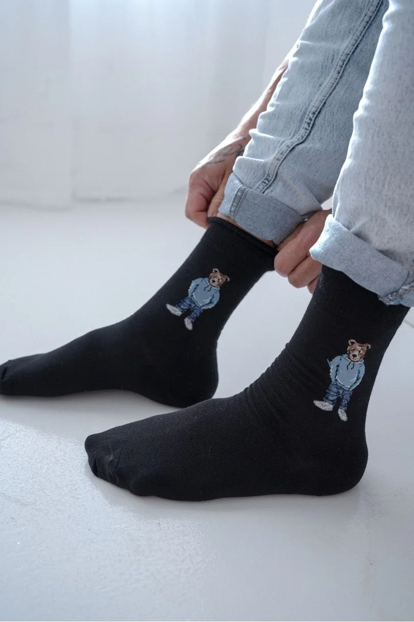 PÁNSKÉ PONOŽKY AVANGARD MEDVÍDEK V MODRÉ MIKINĚ 0125.109 černá 39-42